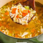 While I usually freeze the broth and chicken separately without noodles (to prevent sogginess), I’ve also frozen the complete soup in a pinch. Just thaw gently and add extra broth or water if it’s too thick.