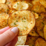 Since these chips get their magic from crispy texture, freezing isn’t ideal. I haven’t had much luck freezing them without them turning soggy after thawing. If you want to prepare in advance, it’s better to slice and soak the potatoes early, then air fry right before serving.