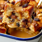While the pudding cools slightly, I start my caramel sauce. Melt butter in a saucepan over medium-high heat, then whisk in brown sugar and heavy cream until the sugar dissolves and the sauce is smooth. Remove from heat, stir in vanilla, and pour generously over the warm bread pudding just before serving. It’s decadent and worth every spoonful!