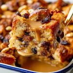 This delicious Bread Pudding With Apples features toasted brioche bread cubes combined with tart Granny Smith apples, crunchy walnuts, and dried cranberries, all soaked in a rich spiced custard. Baked to perfection and served warm with a luscious caramel sauce, this dessert is perfect for cozy gatherings or holiday meals.