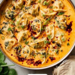 I reheat leftovers gently on the stovetop over low-medium heat, stirring occasionally to prevent sticking. Adding a splash of water or broth helps loosen the sauce. Microwaving works too, just keep an eye so the dumplings don’t dry out.