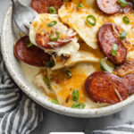 Leftovers keep well in an airtight container in the fridge for up to 3 days. I find the flavors even deepen overnight! Just give it a gentle reheat so the sauce stays creamy and the pierogies don’t dry out.