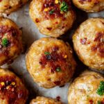 Delicious and healthy baked turkey meatballs made with ground turkey, parmesan, and aromatics. Perfect for a quick dinner, they bake to juicy perfection and can be served with pasta, rice, or as an appetizer.