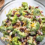 This vibrant Broccoli Salad combines fresh broccoli florets with sharp cheddar cheese, sweet craisins, crunchy bacon, and sunflower kernels all tossed in a tangy and creamy apple cider vinegar dressing. Perfectly chilled, it makes a refreshing and flavorful side dish for any meal or gathering.