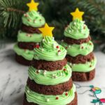 Create festive Brownie Christmas Trees with this easy recipe featuring chewy brownies stacked with green buttercream frosting, holiday sprinkles, and star toppers. Perfect for holiday gatherings and sweet celebrations.