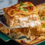 - Rest and Serve: Remove the lasagna from the oven and let it rest for at least 10 minutes to set. Garnish with sliced green onions before slicing and serving. Enjoy!