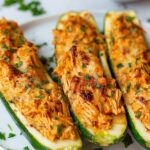 - Stuff Zucchini: Spoon the buffalo chicken filling evenly into each prepared zucchini boat.