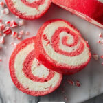 This festive Candy Cane Roll is a delightful peppermint-flavored cake with striking red and white stripes, filled and frosted with a creamy peppermint cream cheese frosting studded with crushed candy canes. Perfect for holiday celebrations, this treat combines light, fluffy cake and smooth, tangy frosting for a visually impressive and delicious dessert.
