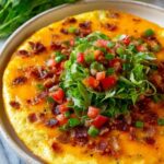 Cheeseburger Pie is a savory and hearty dish combining crispy bacon, seasoned ground beef, cheddar cheese, and a fluffy Bisquick batter, baked to golden perfection. Topped with fresh lettuce, tomatoes, and pickles, it offers a classic cheeseburger flavor in a comforting pie form perfect for a satisfying meal.