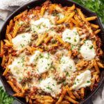 - Add Cheeses and Bake: Dollop ricotta cheese over the pasta mixture, then sprinkle the shredded mozzarella and parmesan cheese evenly on top. Transfer the skillet to the preheated oven and bake for 20 minutes. For a crispier cheese topping, broil for an additional 2-3 minutes at the end.