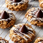 Delight in the chewy, spiced goodness of Cherry Blossom Cookies featuring whole rolled oats, dried tart cherries, and a chocolate kiss center. Finished with an optional vanilla almond bark drizzle, these cookies blend warmth and sweetness perfect for any occasion.