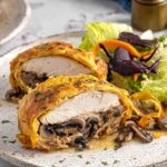 Chicken Wellington is a delightful dish featuring juicy seared chicken breasts wrapped in golden, flaky puff pastry with a savory mushroom and herb filling. This elegant main course combines tender chicken, creamy mushroom mixture, and buttery pastry for a restaurant-style meal perfect for special occasions or a comforting dinner.