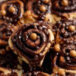 While the rolls cool for about 15 minutes, whisk together powdered sugar, Nutella, milk, and vanilla for the icing. Pour it generously over the warm rolls—watch it melt and drip into every crevice. For a little flair, sprinkle chocolate pearls or shavings on top. Then, dig in and savor that perfectly gooey, chocolaty joy!