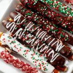 Delicious homemade chocolate covered pretzels featuring semisweet baking chocolate dipped pretzel rods, optionally drizzled with vanilla almond bark and topped with your favorite sprinkles and nuts. Perfect for gifting or snacking, these treats combine salty and sweet in an easy-to-make recipe.