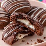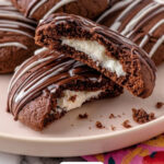 Deliciously soft chocolate cream cheese cookies featuring a rich chocolate dough wrapped around a smooth cream cheese filling, finished with a drizzle of melted chocolate. Perfect for satisfying any chocolate lover’s craving with a decadent twist.