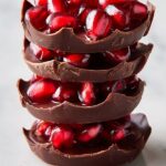 - Top with pomegranate seeds: Sprinkle a generous amount of pomegranate seeds over the melted chocolate in each cup, ensuring good coverage.