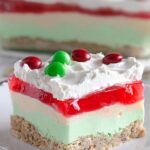 Christmas Lush is a festive, layered dessert perfect for holiday gatherings. It features a buttery crust, a tangy lime gelatin cream cheese layer, a creamy second layer, and a fresh strawberry gelatin topping, all chilled to perfection and garnished with whipped topping and festive sprinkles or candy.