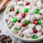 Christmas Puppy Chow is a festive, sweet snack mix featuring chocolate, peanut butter, and crunchy cereal coated in powdered sugar, perfect for holiday gatherings and easy to make in minutes.