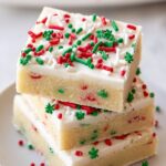 - Add Toppings and Serve: Sprinkle the top with assorted Christmas sprinkles or M&Ms if desired. Cut into squares and serve.