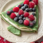 Celebrate the holiday season with these festive Christmas Tree Crepes topped with a luscious gingerbread spice whipped cream. Delicate sweet crepes are flavored with vanilla and almond extracts, filled and folded to resemble Christmas trees, then adorned with fresh berries and dusted with powdered sugar for a perfect seasonal breakfast or dessert.