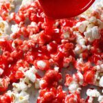 - Coat Popcorn: Quickly pour the hot cinnamon candy mixture evenly over the popcorn on the baking sheet. Using a spatula or large spoon, gently toss the popcorn to coat it thoroughly with the cinnamon candy.