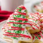 This Copycat Little Debbie Christmas Tree Cakes recipe recreates the festive favorite with moist yellow cake, fluffy marshmallow filling, and a smooth white almond bark coating decorated with green sanding sugar and red candy melt stripes. Perfect for holiday gatherings, these charming tree-shaped treats are fun to make and delicious to enjoy.