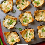 - If a 24-count mini muffin tin is not available, use a 12-count regular muffin tin by placing two wonton wrappers offset to form each cup and doubling the filling per cup.