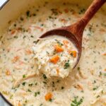 Crack Chicken and Rice Soup is a comforting one-pot meal featuring tender shredded chicken, hearty long-grain rice, creamy cheeses, bacon, and flavorful ranch seasoning all simmered together in a rich chicken broth for an easy and satisfying dish.