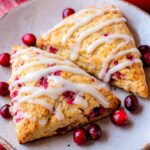 Delight in these Glazed Cranberry Orange Scones, a perfect balance of tart cranberries and zesty orange flavor in a tender, flaky pastry. Ideal for breakfast or a sweet snack, these scones are topped with a fresh orange glaze that adds a sweet citrus finish.