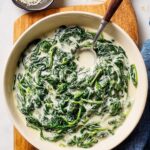 A rich and creamy creamed spinach recipe featuring tender fresh spinach cooked in a flavorful sauce made with butter, shallots, garlic, cream, and Parmesan cheese, finished with a touch of fresh lemon juice for brightness.