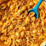 Creamy Beef and Shells is a comforting and hearty one-pan meal featuring ground beef simmered in a rich tomato and cream sauce, combined with tender shell pasta and melted cheddar cheese. This easy-to-make dish blends savory spices, a touch of heat from hot sauce, and creamy textures for a satisfying family-friendly dinner.