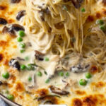 Chicken Tetrazzini is a creamy, comforting pasta bake featuring tender chicken, mushrooms, peas, and a rich sauce made from cream soups, sour cream, and Parmesan cheese. This classic casserole is baked to bubbly perfection and topped with gooey mozzarella, ideal for a satisfying family dinner.
