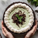 This Crème de Menthe Pie features a rich and creamy mint chocolate filling nestled in a crunchy Oreo cookie crust with a smooth mint chocolate ganache layer. Perfectly chilled and set, this dessert delivers refreshing mint flavor balanced with bittersweet chocolate for an indulgent treat ideal for mint lovers.