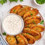 Crispy and tangy Air Fryer Fried Dill Pickles are a deliciously crunchy snack or appetizer. Coated in a seasoned panko breadcrumb crust and perfectly air fried for a healthier twist on this classic treat.