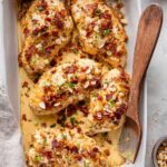 - Assemble: Place the seasoned chicken breasts into the prepared baking dish. Evenly spread the creamy bacon and cheese mixture on top of each chicken breast.