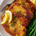 Crispy breaded pork chops baked to perfection and served with fresh lemon wedges, offering a flavorful and juicy main course that's easy to prepare and perfect for a weeknight dinner.