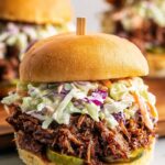 - Assemble Sandwiches: On the bottom halves of the buns, layer the heated beef brisket evenly. Drizzle with barbecue sauce, then top with coleslaw.