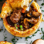 These Mini Beef Pot Pies feature tender, slow-cooked beef stew meat in a rich Guinness-infused gravy, combined with vegetables and topped with flaky puff pastry. Perfect for a comforting dinner, these individual pies bake to golden perfection, offering a deliciously savory meal that's ideal for any occasion.