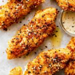 Everything Bagel Chicken Tenders are classic baked chicken tenders elevated with a flavorful and crunchy coating made from everything bagel seasoning, including garlic, onions, sesame seeds, and poppy seeds. These tenders are baked to golden perfection and served with your favorite dipping sauces, perfect for a quick and delicious meal.