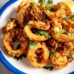 - Serve: Transfer all fried calamari to a serving plate and finish with a squeeze of fresh lemon juice. Serve hot.