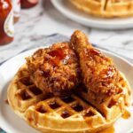 - Assemble and serve: Place fried chicken pieces atop warm waffles and drizzle generously with the cinnamon maple syrup. Serve immediately for best taste and texture.