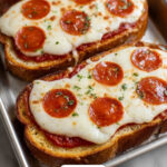 Once out of the oven, slice your French bread pizzas and serve immediately. The crust will be delightfully crispy, the topping melty and flavorful, and the garlic herb aroma will make it impossible to wait!