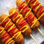 - Serve. Add your favorite condiments such as ketchup, mustard, or gochujang mayo. Serve immediately and enjoy the ultra crispy, cheesy Korean corn dog.