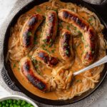 - Finish the dish: Return the browned sausages to the skillet and toss them to coat in the onion gravy. Simmer for a few more minutes until heated through. Taste the gravy and season with salt and pepper as needed.
