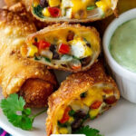 Crispy southwestern egg rolls packed with diced chicken, black beans, corn, peppers, spinach, and melty Monterey Jack cheese, served with a creamy avocado ranch dipping sauce. Perfect as a flavorful party appetizer or snack.