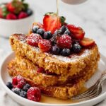 This Crunchy French Toast recipe transforms classic French toast by coating it with crushed cornflakes for an irresistible crispy texture. Made with rich brioche or challah bread soaked in a spiced egg and milk mixture, it’s cooked to golden perfection and served warm with maple syrup, powdered sugar, and fresh berries—perfect for a comforting American breakfast or brunch.