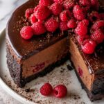 This decadent Dark Chocolate Raspberry Cheesecake combines a rich semi-sweet chocolate filling with fresh raspberries and a crisp Oreo crust. Featuring a silky chocolate ganache topping, this elegant dessert is perfect for special occasions or anytime you crave a luscious chocolate treat with a fruity twist.