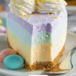 I love topping this pie with just a generous swirl of fresh whipped cream and maybe a few fresh berries or edible flowers when serving for Easter brunch. It adds a fresh, natural element that complements the creamy, sweet layers perfectly.