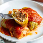Reheat cabbage rolls covered in the oven at 350ºF until warmed through — about 20-25 minutes. You can also microwave them in short bursts with a cover to keep moisture locked in, but I prefer the oven for the best texture.