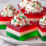 Christmas Ribbon Salad is a festive and colorful layered gelatin dessert featuring lime, lemon, and cherry Jell-O with a creamy marshmallow and cream cheese middle layer. Perfect for holiday gatherings, this refreshing salad is sweet, tangy, and visually stunning with distinct stripes of flavor and texture.